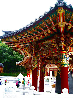 Last Saturday Sarah and I decided to go climb Dobongsan, the most popular mountain around Seoul. You get off at Dobongsan metro station which is situated on Line 7 and 1. It was a lot easier to get to then Suraksan since so many people were headed that way. In all situations just follow the other hikers, they led us straight to it. Along the way we saw many temples. Right from the beginning we past this amazing temple at the beginning of the trail: